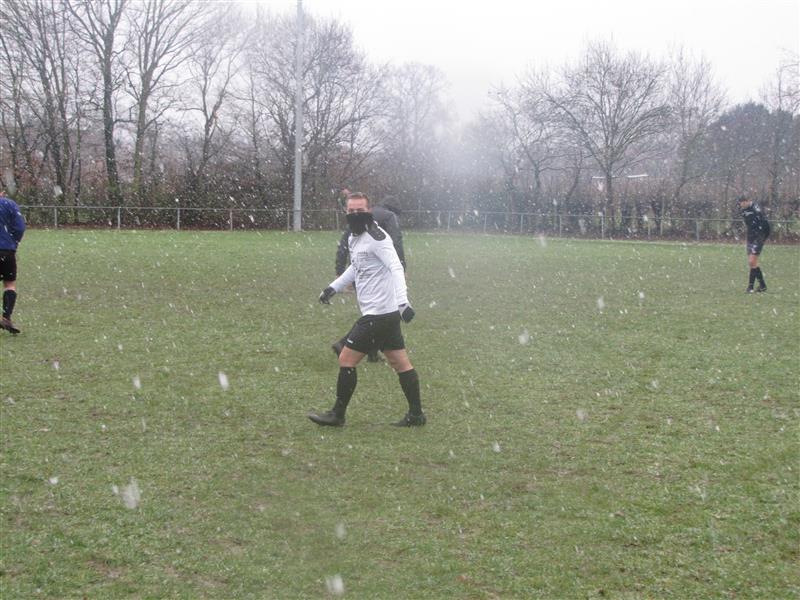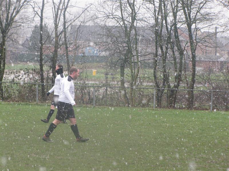 De tweede helft kon niet beter beginnen voor G.B. De thuisdoelman miskeek zich immers op een verre bal van Nick VDB en meteen gaven de bordjes 2-4 aan. Meteen wedstrijd helemaal gespeeld. De Kosters voor de rust heel wat energie verbruikt konden immers geen vuist meer maken en moesten nu de wet van de sterkste ondergaan. Het werd een kat en muis spel op een veld dat met de minuut slechter bespeelbaar werd. G.B. creëerde nu kans op kans maar wrong er een hele boel vakkundig de nek om. Doch werd er ook nog gescoord. De 2-5 van Thoelen via een raket vanop 25 meter. De 2-6 via Nick VDB die daarmee zijn derde van de namiddag scoorde. En 2-7 via Bossie op strafschop, enfin dat stond normaal toch in het script. Doch zijn elfmeter werd vakkundig gestopt door de thuisgoalie en geen Bossie time in Nieuwerkerken. Dan zal ik het maar doen dacht Robin. En net voor tijd knalde hij uiteindelijk de 2-7 in de kooi. Net voor tijd was in dit uitzonderlijke geval de 60ste minuut. De scheids besliste immers dat het genoeg geweest was. Het zware veld en de koude hadden intussen genoeg hun tol geëist. Vooral voor onze rechts back nog steeds niet ontnuchterd van zijn nachtelijke uitstap en ondertussen blauw uitgeslagen van onderkoeling klonk dit laatste fluitsignaal als muziek in de oren.
