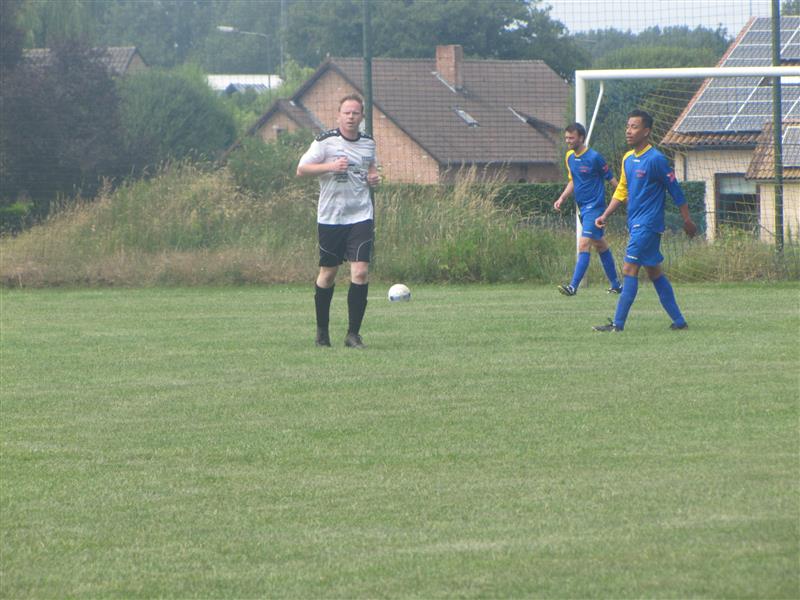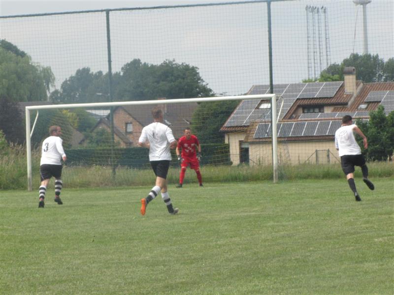 Met 25 graden op het kwik en een prachtig zomerzonnetjes werd er stipt om 14:00h afgetrapt. Zowel spelers en supporters hadden er zin in nog een laatste keer dit seizoen te vlammen.
