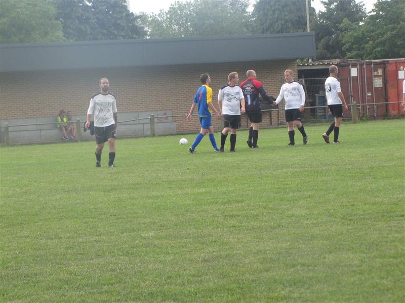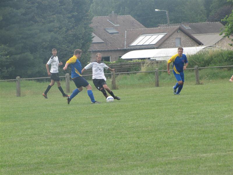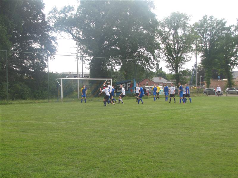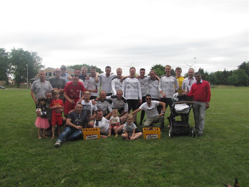 - Na de match werd er aan het veld nog een feestje gebouwd door spelers en de talrijk opgekomen supporters. Nadat er 7 bakken van het goudgele vocht en een aantal flessen cava soldaat gemaakt waren ging het feestje verder in de kring waar het seizoen aan de kaarttafel afgesloten werd.