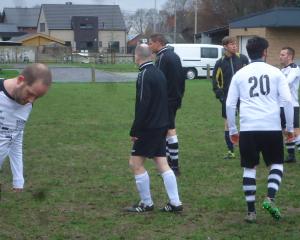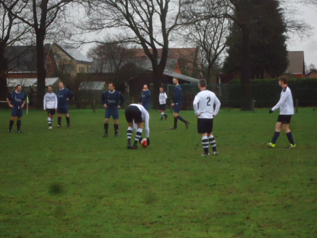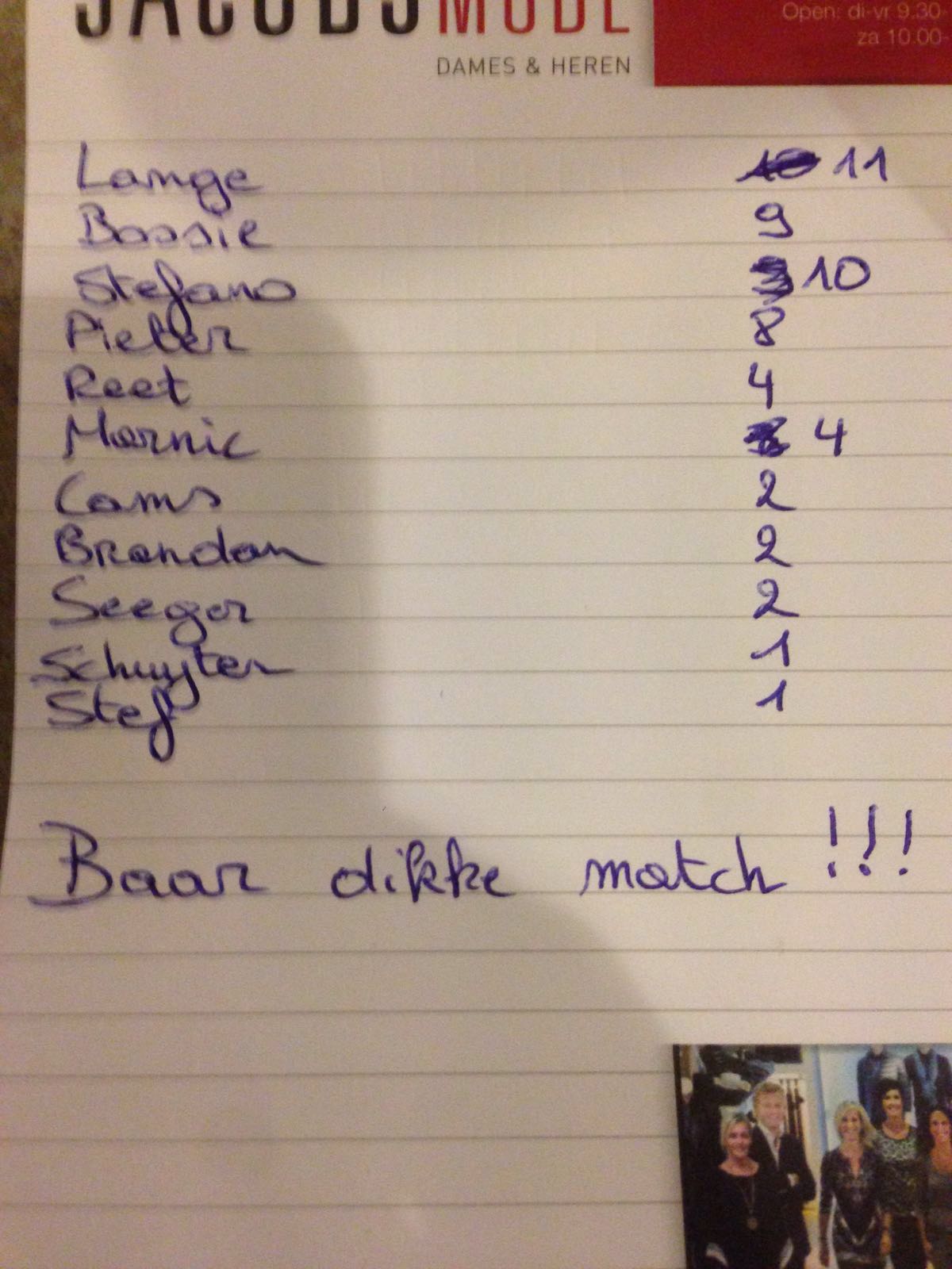 Brecht, Nick,Stan,Steven Mertens en Kristof zijn niet van de partij. Bossie komt in doel staan en zo komen we net aan 11 man.