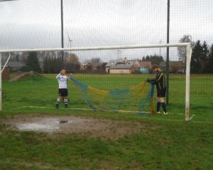 In de gietende regen werd er stipt om drie uur afgetrapt. De eerste 5 minuten met tien tegen tien. Bij de bezoekers was er eentje te laat in Eversel geraakt en bij G.B. stelde wie anders dan Reet bij de aftrap vast dat hij zijn tenue had vergeten aan te doen.