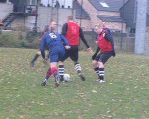 Zaterdag weer een topaffiche op de kalender, Geren-bij - KWB Bos!! Onze laatste ontmoeting eindigde op een 2-3 winst, toen gaven we een 0-3 voorsprong nog bijna uit handen. Bos is dan ook een van onze sterkste tegenstanders, daarom verwacht T4 iedereen zaterdag uitgerust, fit en scherp aan de aftrap! We beschikken over een kern van 12 vaste krijgers! In doel, na zwaar overleg en met de sterke overtuigingskracht van T4 staat niemand minder dan Wesley “Buffon” Conte! De verdediging onder leiding van “houthakker” Stef, links Nick “uitschuifbare benen” Cuppers en rechts T4 Marnick die zullen moeten samenwerken aan een solide achterhoede. In het spil van het spel beschikken we weer over een goed geoliede motor, “Keizer” Kris, “libero” Brecht, Bavo “Iniesta” en onze eigen “KDB” Paletti, links “sloddervos” Doriano en rechts “de tank” Geussens. Dan onze aanvalslinie om U tegen te zeggen met aan het kanon Robin “Koller” en “werkpaard” Vogel.