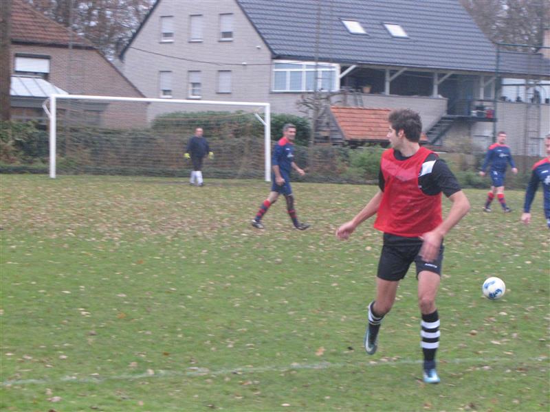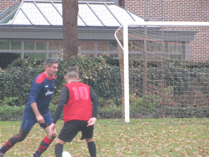 Niets in het wedstrijdbegin deed vermoeden dat G.B. zulke ruime zege zou boeken. G.B. begon wel sterk maar ook Bos liet zich niet kennen en speelde vlotjes mee. De eerste kansen waren voor Doumkos. Hij Haalde binnen de minuut twee keer uit mag zag zijn schot telkens gepakt door de bezoekende goalie. Bos probeerde het ook vanuit de tweede lijn maar onze gelegenheidsdoelman Conte liet zich niet verrassen en greep kordaat in. Op het kwartier kon G.B. een eerste keer juichen. Na een prachtige combinatie met Joris legde Brecht de 1-0 in het mandje. De bezoekers waren niet aangeslagen en gingen meteen op zoek naar de gelijkmaker. Ze voetbalden meteen 2 open kansen bij mekaar. Gelukkig voor G.B. stond Conte zeer sterk te keepen en hield hij met twee klasse tussenkomsten zijn netten schoon. Na een tien minuutjes lichte druk van de bezoekers stak G.B. de neus weer aan het venster. En meteen stond de 2-0 op het bord. Het was onze topschutter Robin die met een droge knal deze treffer voor zijn rekening nam. Dit was toch een tik voor de bezoekers die nog wel probeerden iets terug te doen maar het moeilijk kregen tegen een steeds sterker wordend G.B. Tot overmaat van ramp voor Bos kregen ze net voor de rust nog een derde doelpunt binnen. Weer was het Robin die binnen legde en zorgde voor de 3-0 ruststand.