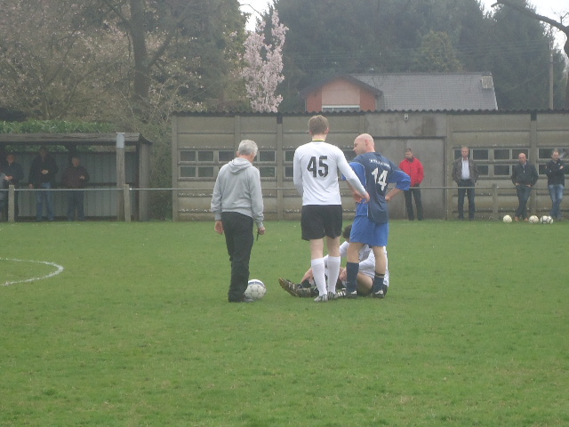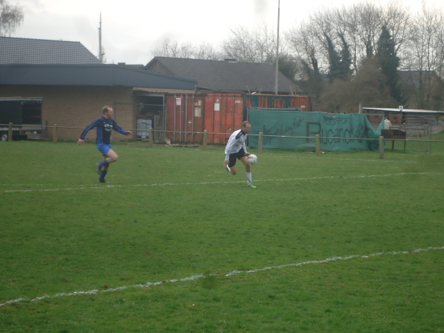 De tweede helft was nog maar net op gang getrapt of Mathias zette op aangeven van Robin de forfaitscore op het bord. Amper 5 minuten later bekroonde Schuyten zijn sterke match met een treffer. Brecht die ook zijn doelpunt verdiende had even later minder geluk. De bezoekende goalie had immers een knappe reflex in huis op zijn loeier van net buiten de grote rechthoek. Geen nood echter want de goed gevolgde Robin legde het leder alsnog in het mandje. Zo stond 10 minuten na de rust de 7-0 al op het bord. De G.B. bleef doordrukken maar het volgende kwartier stokte de scoringsmachine eventjes. Hoewel zowel Cams , Mathias als Stef met enkele loeiers het Hechtel doel bestookten weigerde de bezoekende doelman zich nog een achtste keer om te draaien. Tien minuten voor affluiten moest hij zich uiteindelijk toch nog een keer gewonnen geven. Stefano verzilverde immers met het hoofd een knappe voorzet van Brecht en scoorde zo zijn tweede van de namiddag. Nog was het leed niet geleden voor de bezoekers want even later knalde Bossie nummer negen tegen de touwen. Hoewel de G.B. daarna nog enkele goede mogelijkheden kreeg kwamen de dubbele cijfers niet meer op het bord en legde Maurice met het laatste fluitsignaal de 9-0 definitief vast.