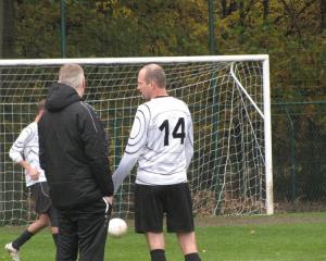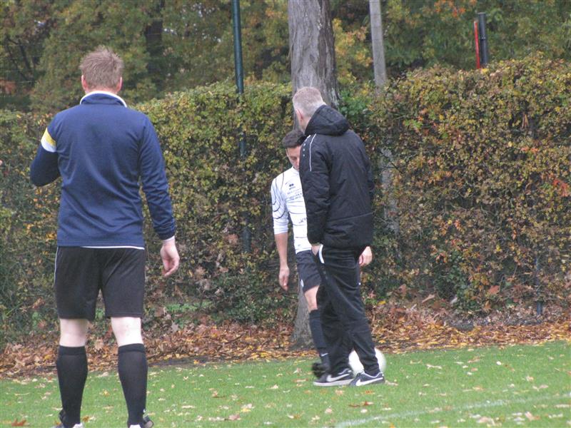 25 min Herk komt nog eens dreigen. Ferla komt ver uit zijn doel en wordt gelobt. Gelukkig voor G.B. vliegt het leder net over de kooi.