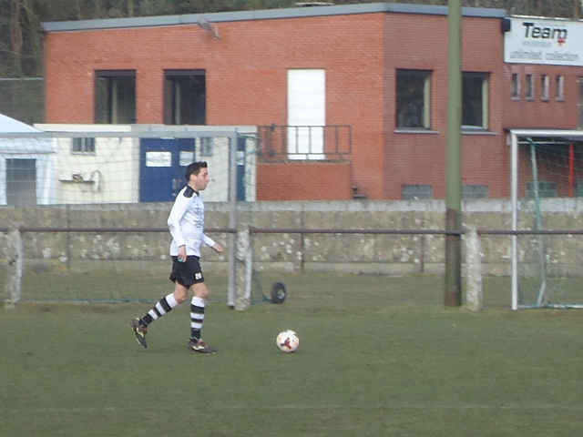 De tweede helft was helemaal een maat voor niets. De thuisploeg was niet van plan open deur dag te houden en bleef zich parkeren voor zijn eigen grote rechthoek. De G.B. begon zich vooral te ergeren in enkele overtredingen die de tegenstander maakte met gevolg dat er nog maar bitter weinig voetbal te zien was. In de 50 ste minuut dan eindelijk nog eens een kans voor G.B. Brendan had een prachtige voorzet in huis die knap gedevieerd werd door Pieter. De thuisdoelman was verslagen, maar de lat bracht redding. Even later onderschepte diezelfde Pieter een slechte terugspeelbal. Dit keer trapte hij echter het leder tegen de paal. Een paar minuten later viel de 0-3 dan toch. Brecht bediende Seeger die netjes zijn tweede van de namiddag binnen duwde. Daarna slaapwandelde iedereen verder naar het einde van de match. Alleen Pieter liet zich nog 2 keer opmerken. Eerst in positieve zin waarbij hij op aangeven van Seeger de 0-4 aantekende. Daarna echter revencheerde hij zich op een tegenstander waardoor hij verdiend rood kreeg en G.B. nog een paar minuten met 10 verder moest. Veel maakte het allemaal niet meer uit want even later maakte de scheidsrechter met het laatste fluitsignaal onze doelman Stan wakker en konden we eindelijk een frisse pint gaan drinken.