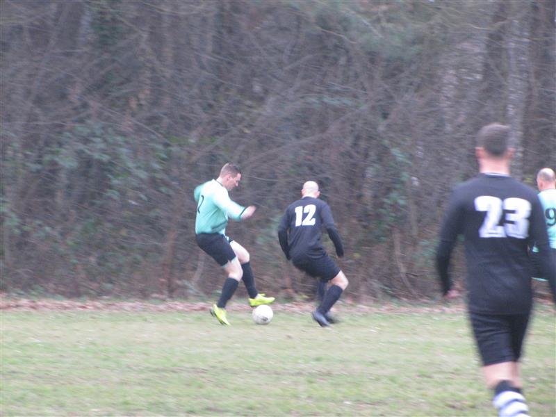 De wedstrijd kon niet beter beginnen voor G.B. Al na 1 minuut lag de bal in het mandje. Vogel kreeg het leder cadeau van de thuisdefensie, nam dit beleefd aan en de 1-0 was een feit. Een supergemotiveerd G.B. drukte door en voor Helchteren het goed en wel besefte lag de tweede treffer al tegen de touwen. Het was Robin die deze voorzijn rekening nam. 5 minuten later stond Robin weer aan het kanon en knalde hij droog de 0-3 binnen. Kan ik ook dacht Joris en binnen de minuut tekende hij de 0-4 aan. En jawel nog eens 2 minuten later was weer de beurt aan Robin om na een prachtige combinatie met Caubergs de 0-5 binnen te duwen. Er waren je leest het goed nog maar amper 14 minuten gespeeld en de forfaitscore stond al op het bord. Na een kwartier kwam Helchteren ook een eerste keer opzetten. En meteen was het ook raak. Eerst werd onze gelegenheidsdoelman Doumkos nog gered door de lat maar 30 seconden later lag de bal na een terecht toegewezen strafschop op de stip. Doumkos koos nog de goede hoek maar was toch verslagen en de 1-5 was een feit. Geen nood echter want een paar minuten later was het aan de andere kant weer kassa. Conte toverde op een verre bal van Doriano een prachtige controle uit zijn schoenen. Hij gaf dan nog eens de perfecte assist aan Vogel die met zijn tweede van de namiddag de 1-6 aantekende. G.B. gunde Helchteren geen moment van rust en een paar tellen later was het weer van dat. Eerst miste Brecht nog een strafschop maar de bal werd slecht weggewerkt en Conte zette nummer 7 op het bord. Het laatste woord van de eerste time was echter aan onze topschutter Robin die in minuut 30 ogenschijnlijk simpel de onwaarschijnlijke 1-8 ruststand op het bord zette.